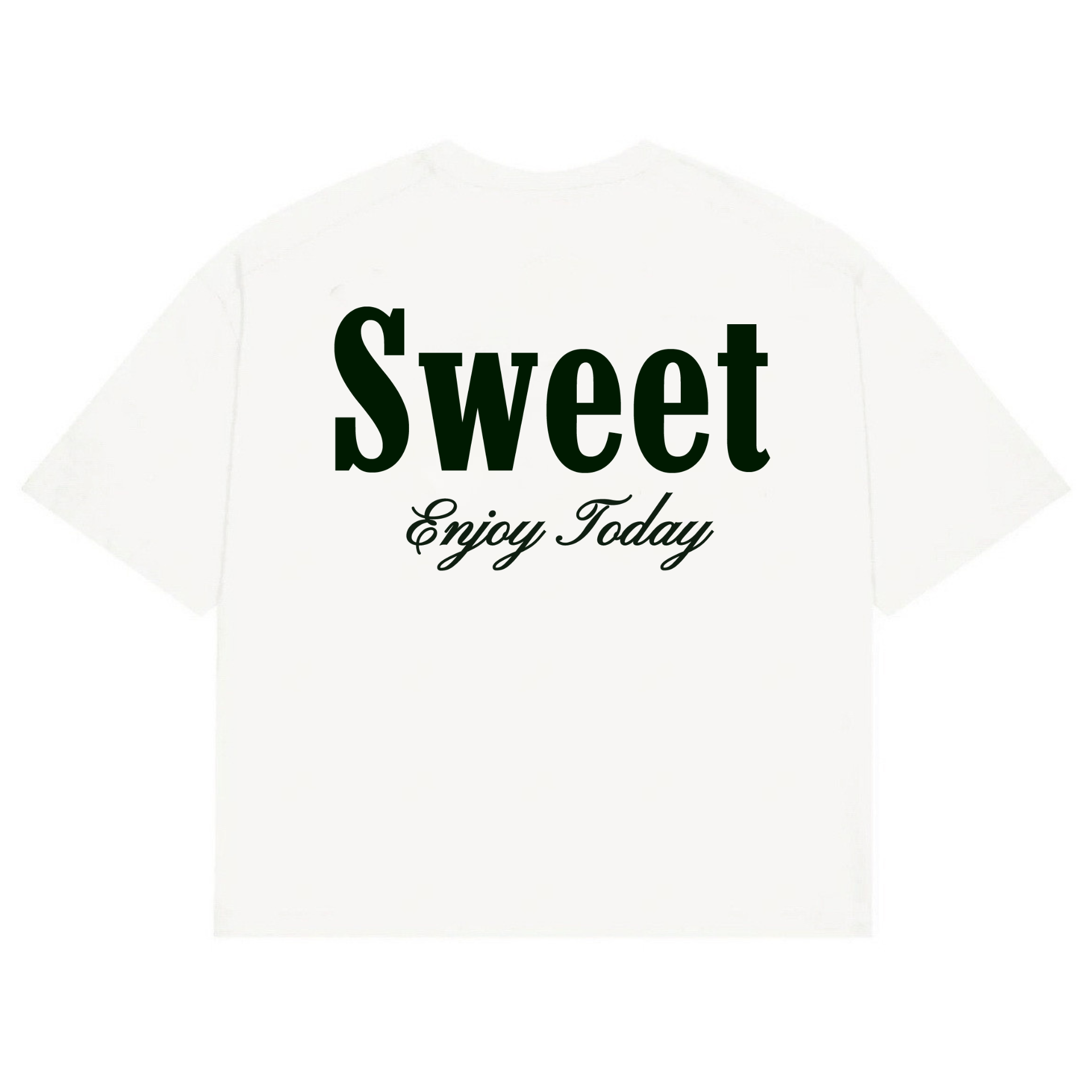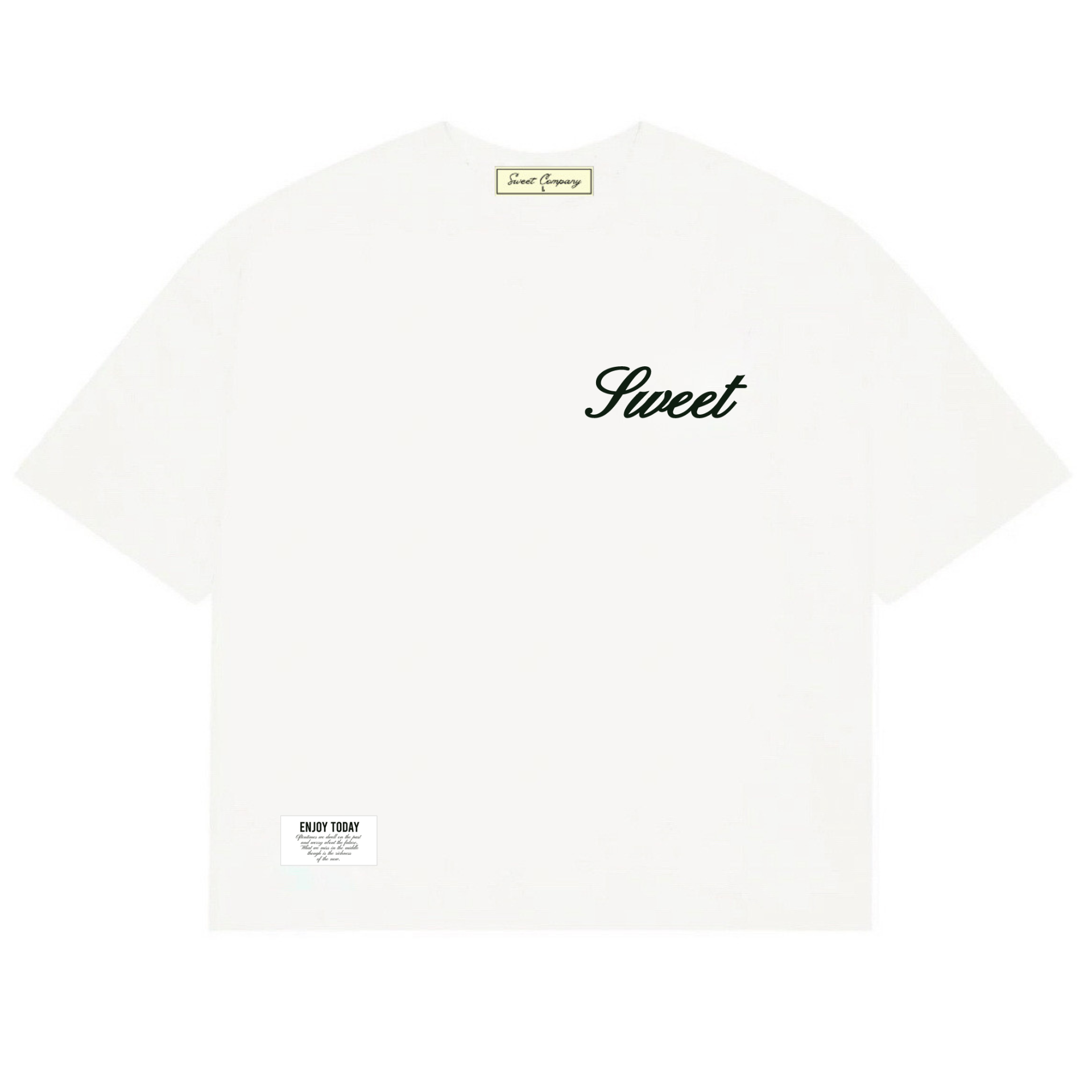 Made from a luxury 305 GSM Cotton Jersey, our Sweet Tee comes in white with our classic dark green lettering. The tee features a boxy & oversized silhouette, with dropped shoulders & a slight crop at the waist.