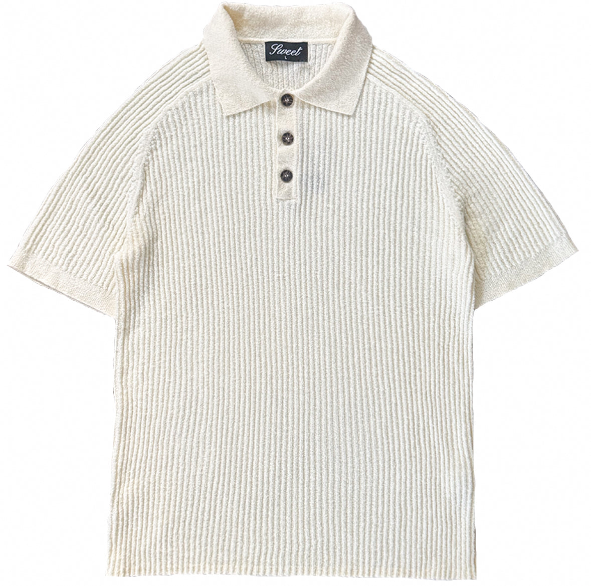 Made from a textured and breathable cotton/nylon blend, introducing our new ribbed short sleeve knit polo. The polo features a raglan sleeve construction along with a 3-button tortoise shell closure. Designed to be an elevated everyday basic, the only branding on the polo lies at the interior neck tag. We decided to let the fabric and the beautiful ribbed texture of the fabric do the talking on this one.