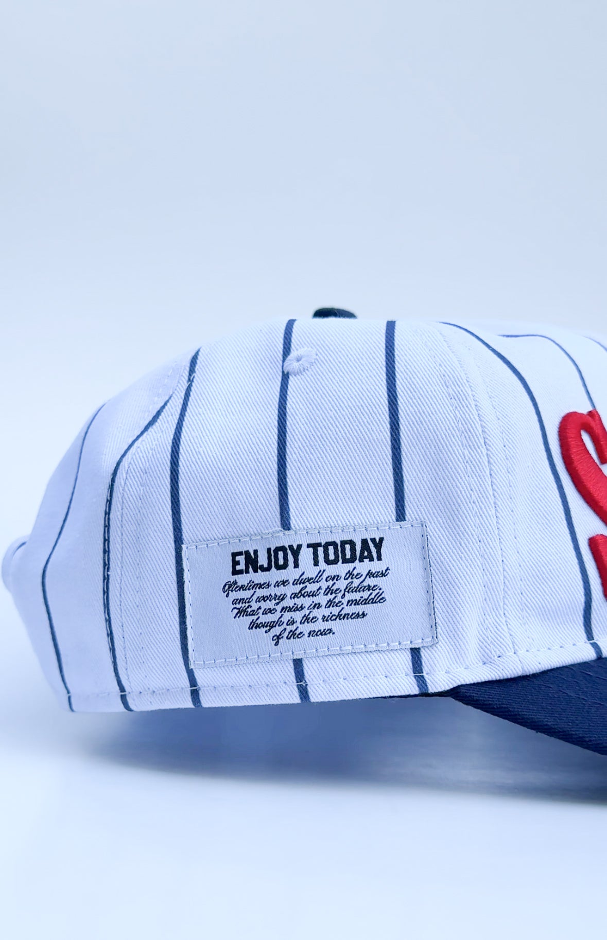 A modern take on the vintage ballcaps of the past, introducing the Sweet Pinstripe hat. Made with a cotton twill fabric, this hat features a Sweet 3D embroidery at front with our message of Enjoying Today sewn on the side.
