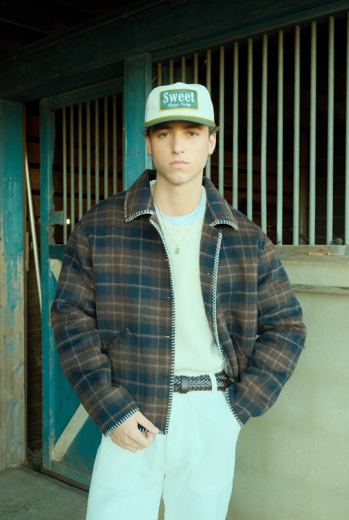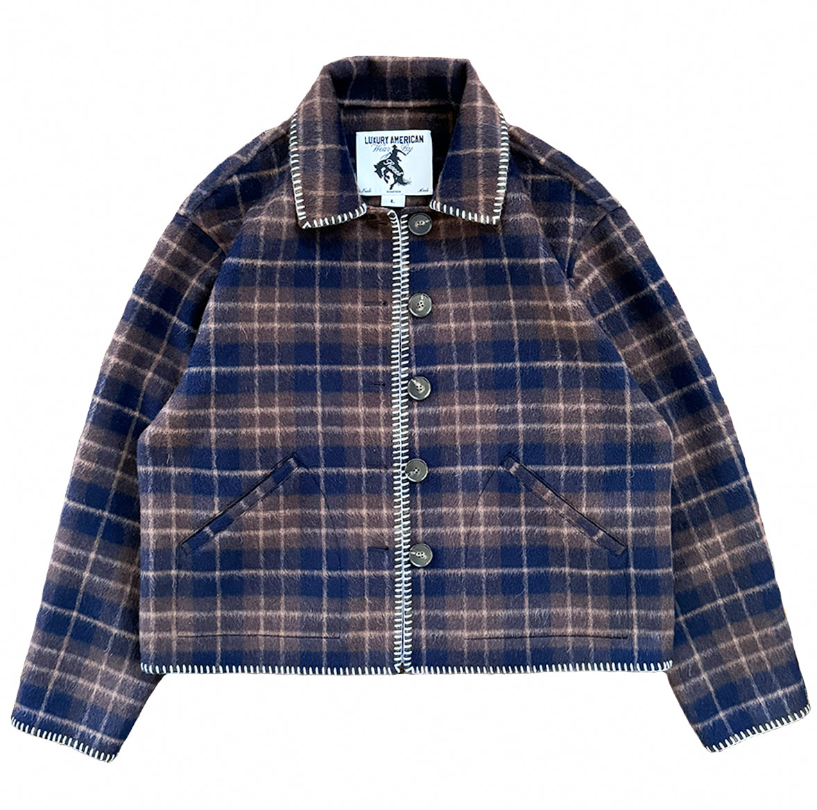 Cut & Sewn from a plaid wool fabric, our Sweet Stitched Wool Jacket comes in an elegant dark navy and brown wool blended pattern. The jacket features a heavyweight & extremely soft feel, complemented by our signature white stitch detailing throughout.