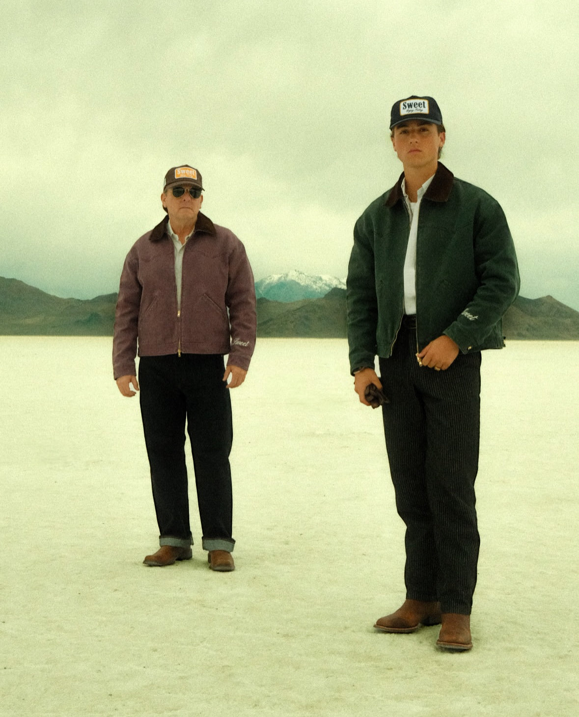 Cut & Sewn from a durable 16oz cotton canvas fabric, our Sweet Western Jacket comes in an elegant dark green. Featuring a yoke stitch detailing across the front and back paneling, the jacket is complemented by a soft plaid flannel interior lining. Detailed with a sewn on interior tag, "S" branded gold buttons at the wrist and cuffs, gold double YKK zippers, and a subtle "Sweet" embroidery at the wrist. This piece is finished with an extensive wash for a broken in look and feel.